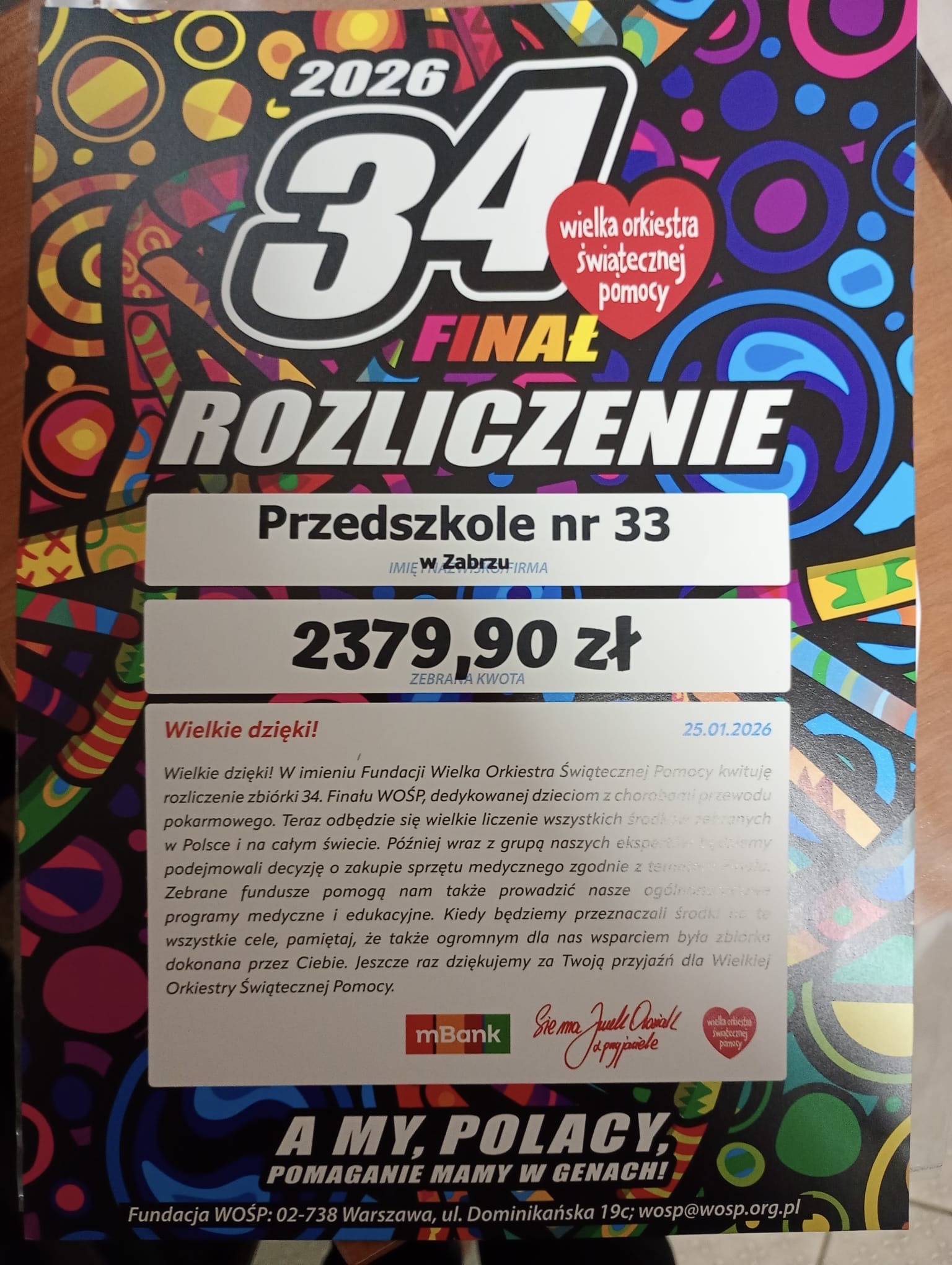 Serdecznie dziękujemy wszystkim za zaangażowanie i każde działanie podjęte na rzecz Wielkiej Orkiestry Świątecznej Pomocy!