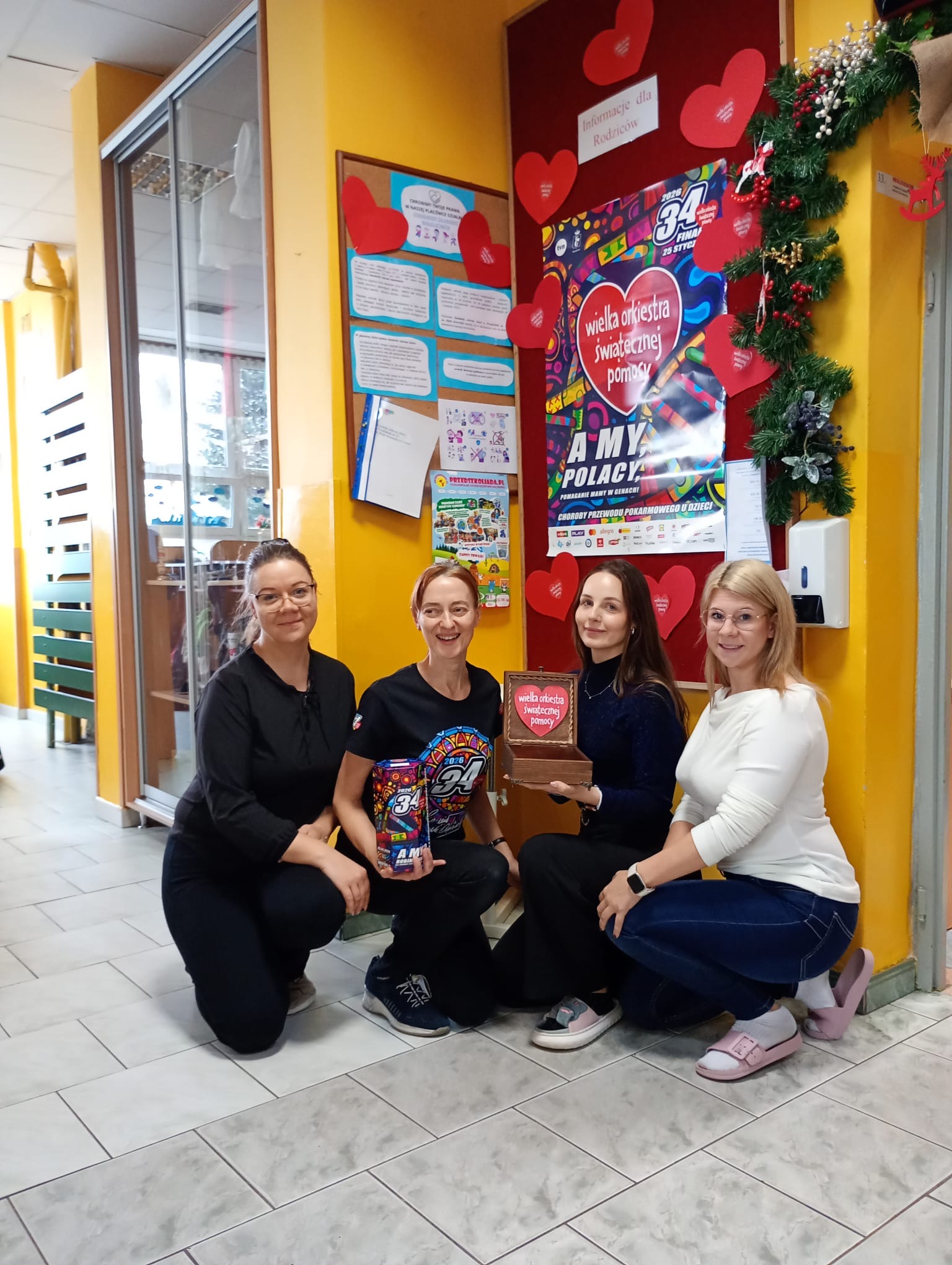 15  oraz 16 stycznia 2026 r. w naszym przedszkolu odbył się 34. Finał Wielkiej Orkiestry Świątecznej Pomocy. Nasze przedszkole aktywnie włączyło się w to wspaniałe przedsięwzięcie. Każda z grup wraz z wychowawcą własnoręcznie przygotowała serca, aby wspierać cel tegorocznej zbiórki: „Diagnostyka i leczenie chorób przewodu pokarmowego u najmłodszych pacjentów”.                                                                 Graliśmy pod hasłem: „Zdrowe brzuszki naszych dzieci”.