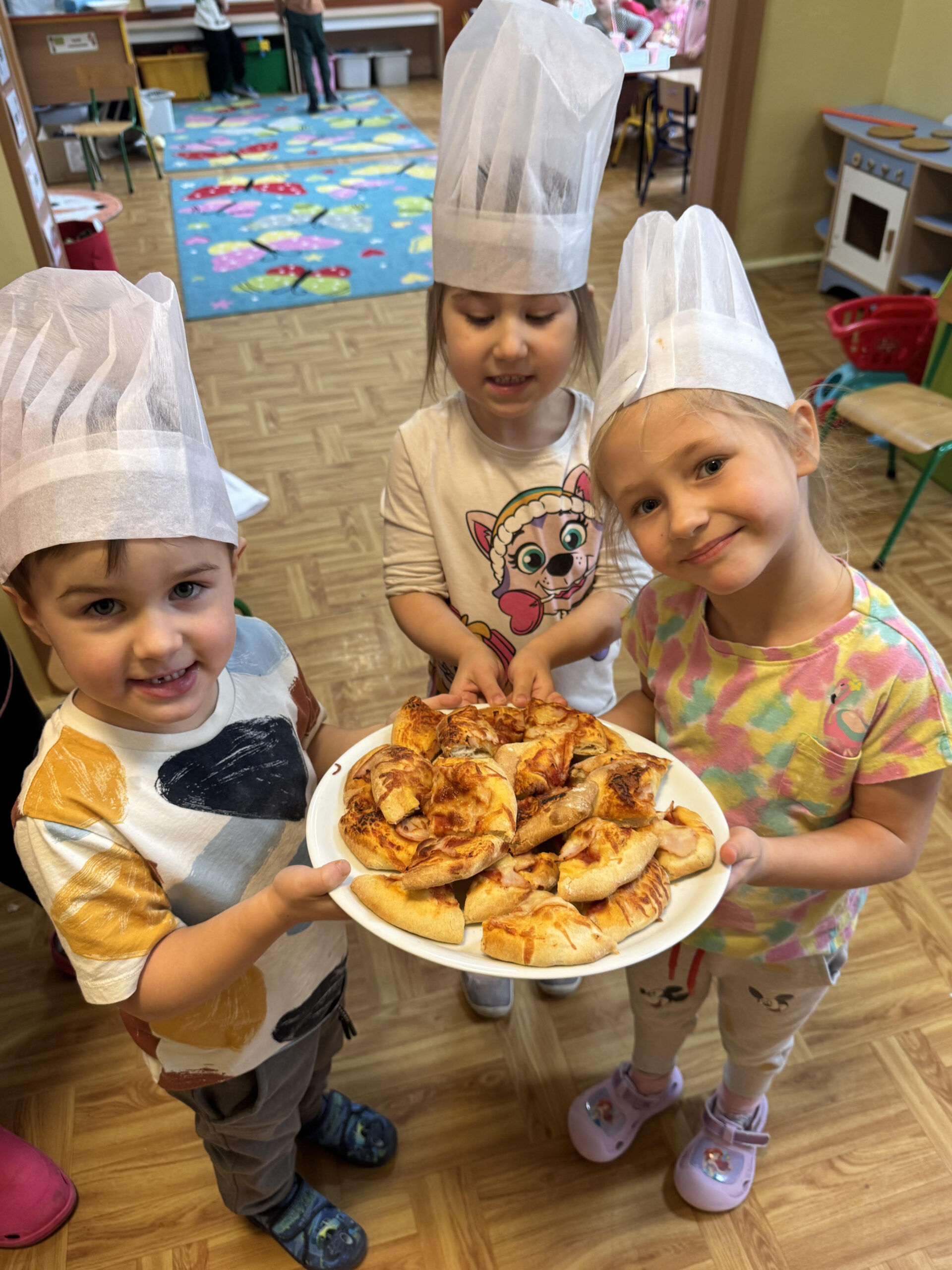 9 lutego w grupie Jeżyków obchodziliśmy Międzynarodowy Dzień Pizzy. Tego dnia przedszkolaki poznały historię tego popularnego dania oraz dowiedziały się, z jakiego kraju pochodzi pizza i jakie składniki najczęściej się na niej znajdują. Rozmawialiśmy o ulubionych smakach dzieci oraz o tym, co sprawia, że pizza jest tak lubiana na całym świecie. Największą atrakcją było oczywiście tworzenie własnych pizz. Dzieci z ogromnym zaangażowaniem dobierały składniki, układały je na swoich „pizzach” i rozwijały przy tym swoją wyobraźnię. Nie zabrakło także zabaw tematycznych, prac plastycznych oraz wspólnego liczenia i nazywania składników. Był to dzień pełen radości, dobrej zabawy i wspaniałych zapachów. Nasze Jeżyki świetnie się bawiły, a przy okazji uczyły współpracy.