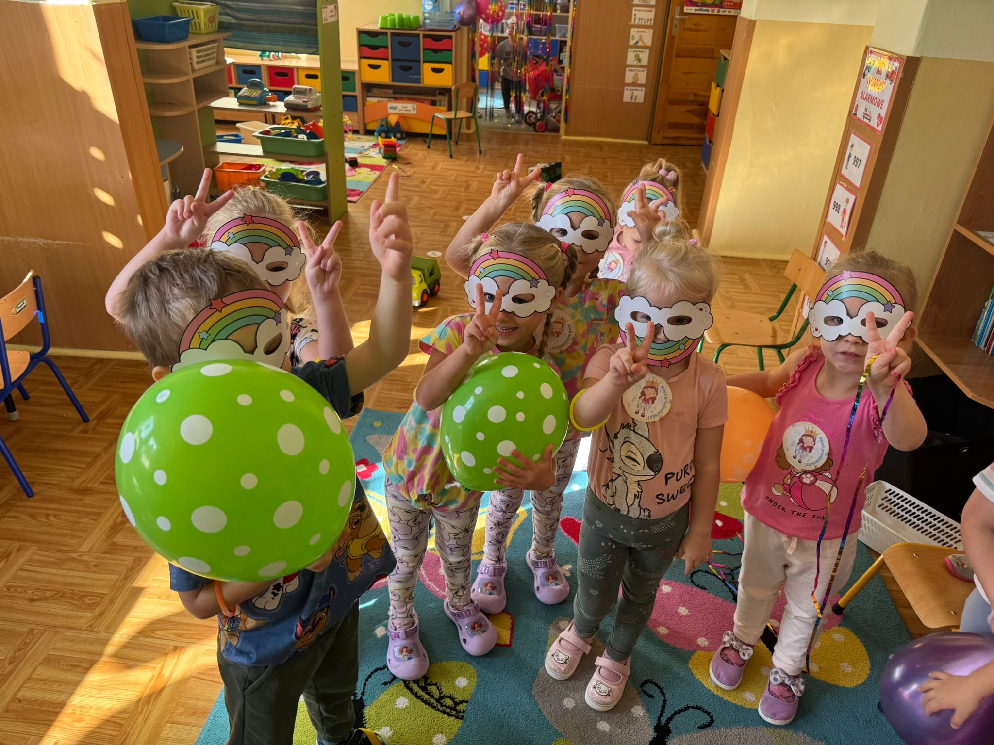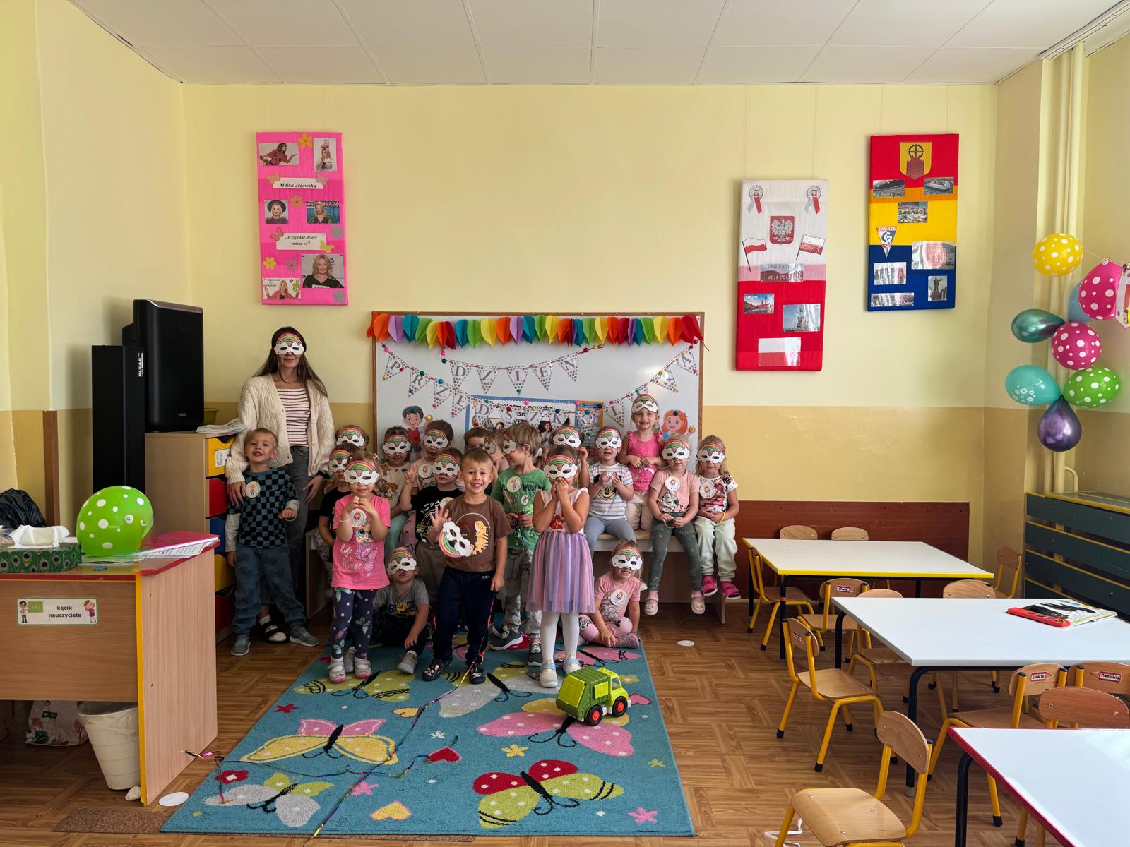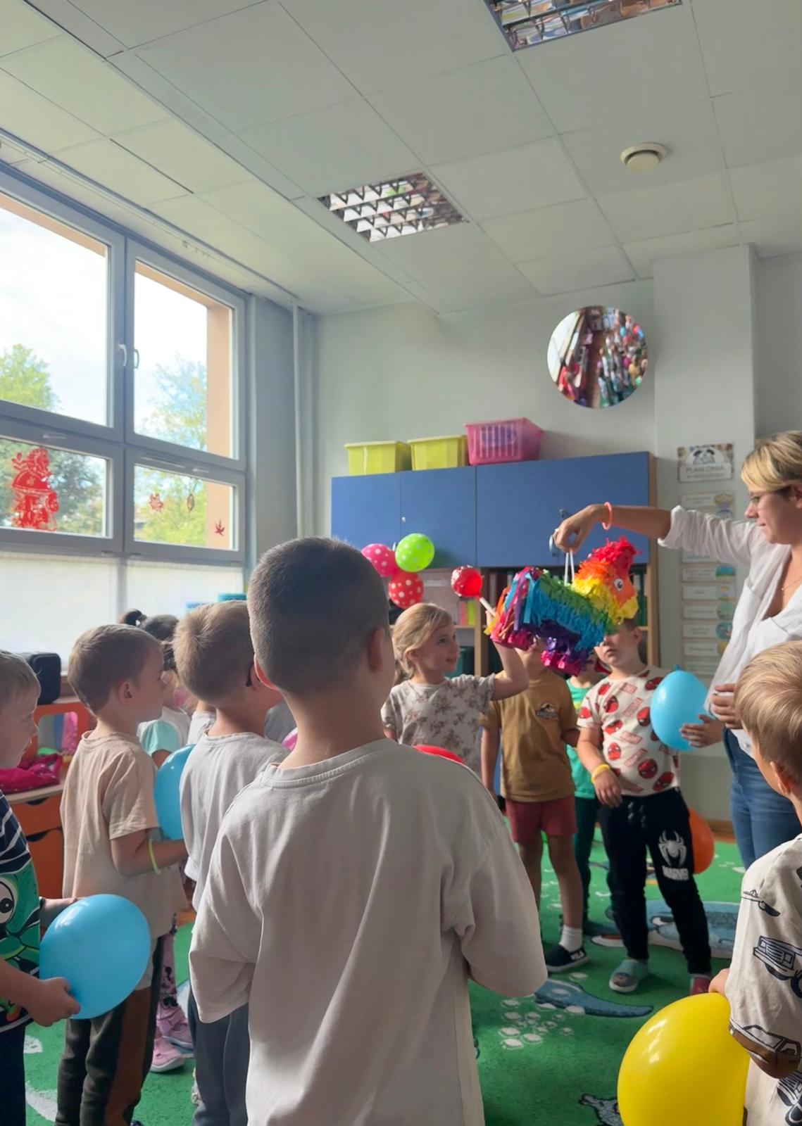 Nasze przedszkolaki świętowały z uśmiechami na twarzach, uczestnicząc w licznych atrakcjach przygotowanych specjalnie na tę okazję. Były tańce, zabawy ruchowe, bańki mydlane, a nawet niespodzianki! Nie zabrakło również wspólnego śpiewania i pysznego poczęstunku.