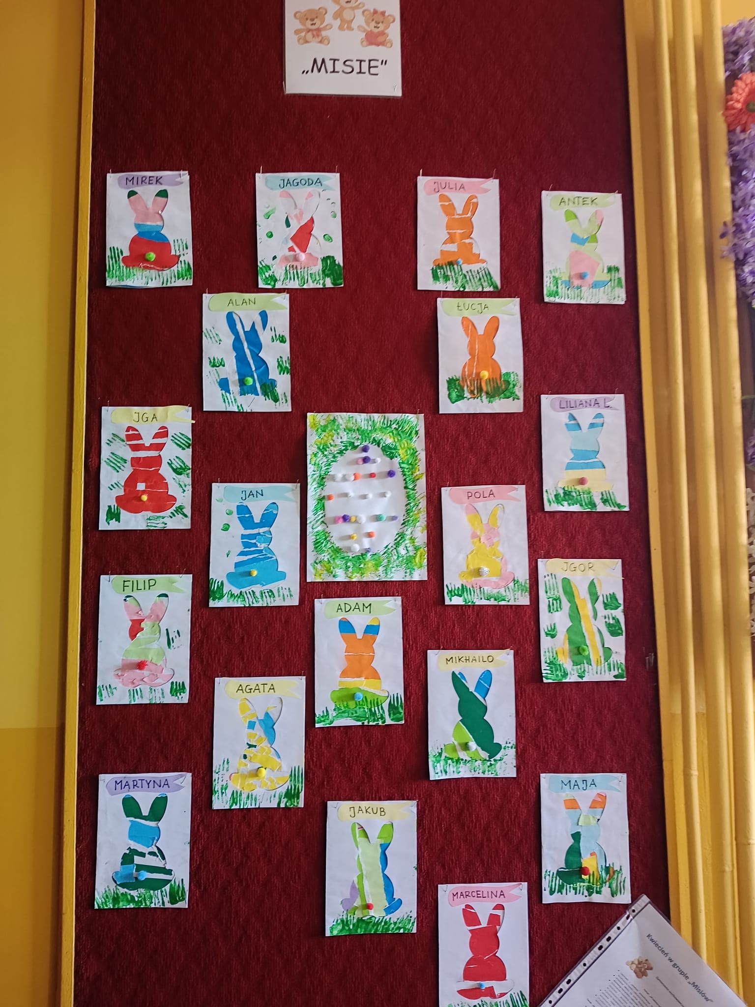 W naszym przedszkolu w dniach 1–3 kwietnia powstała wyjątkowa galeria wielkanocna. Jest to wystawa prac plastycznych przygotowanych przez wszystkie grupy przedszkolne. Dzieci z ogromnym zaangażowaniem i kreatywnością tworzyły kolorowe pisanki, zajączki, kurczaczki oraz inne ozdoby związane ze świętami Wielkanocy. Każda z prac jest niepowtarzalna i odzwierciedla pomysłowość oraz staranność naszych małych artystów. Galeria nie tylko wprowadza nas w świąteczny nastrój, ale także daje możliwość podziwiania talentów dzieci oraz efektów ich wspólnej pracy.