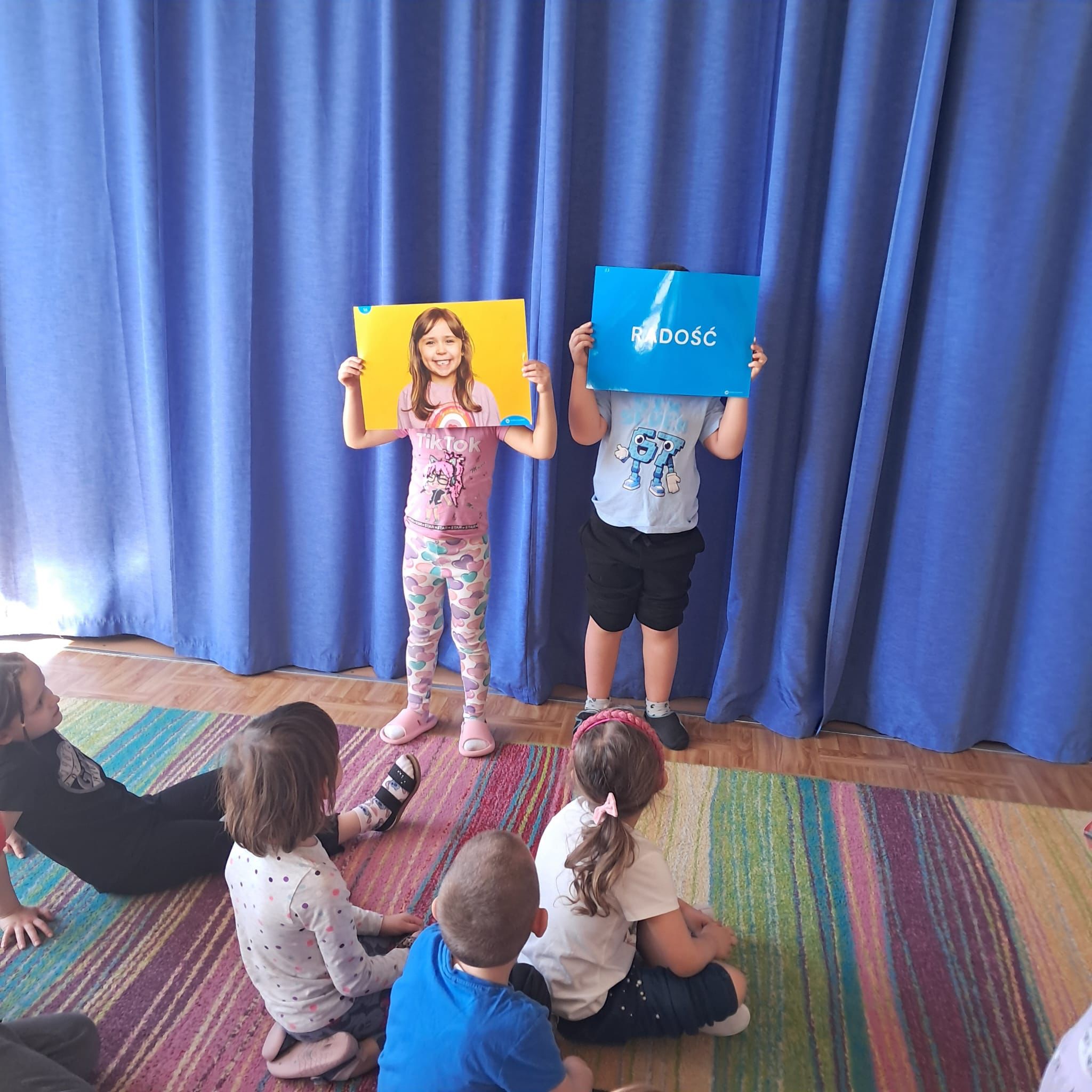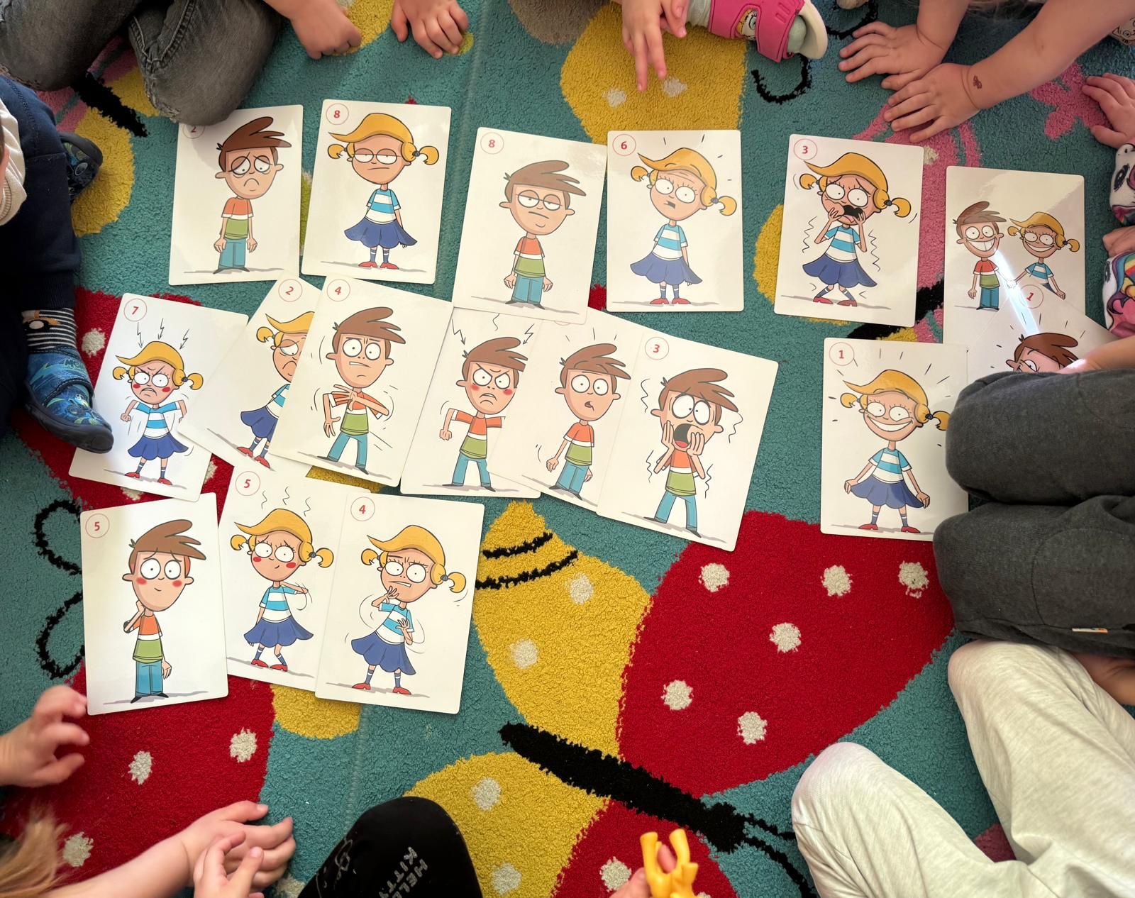 Każdy dzień poświęcony był innej emocji. Rozmawialiśmy o radości, smutku, złości, strachu, a także o wdzięczności i spokoju. Dzieci brały udział w rozmowach kierowanych, zabawach integracyjnych, scenkach dramowych oraz aktywnościach plastycznych związanych z omawianymi uczuciami. Wspólnie zastanawialiśmy się, w jakich sytuacjach pojawiają się różne emocje oraz jak można sobie z nimi radzić.