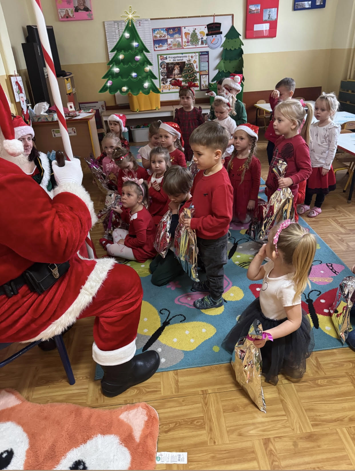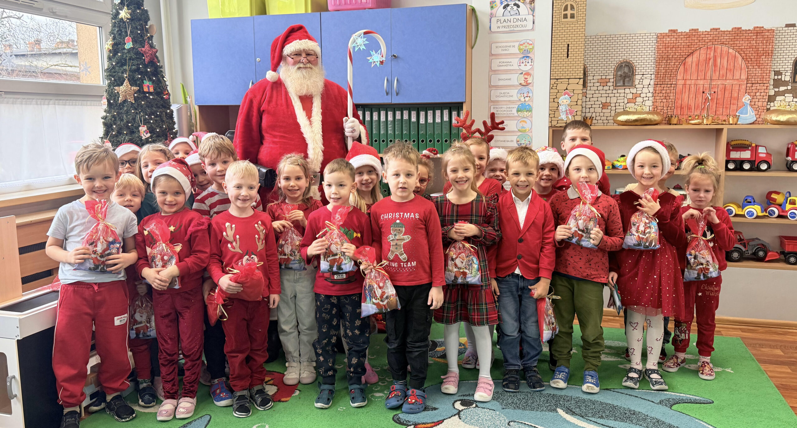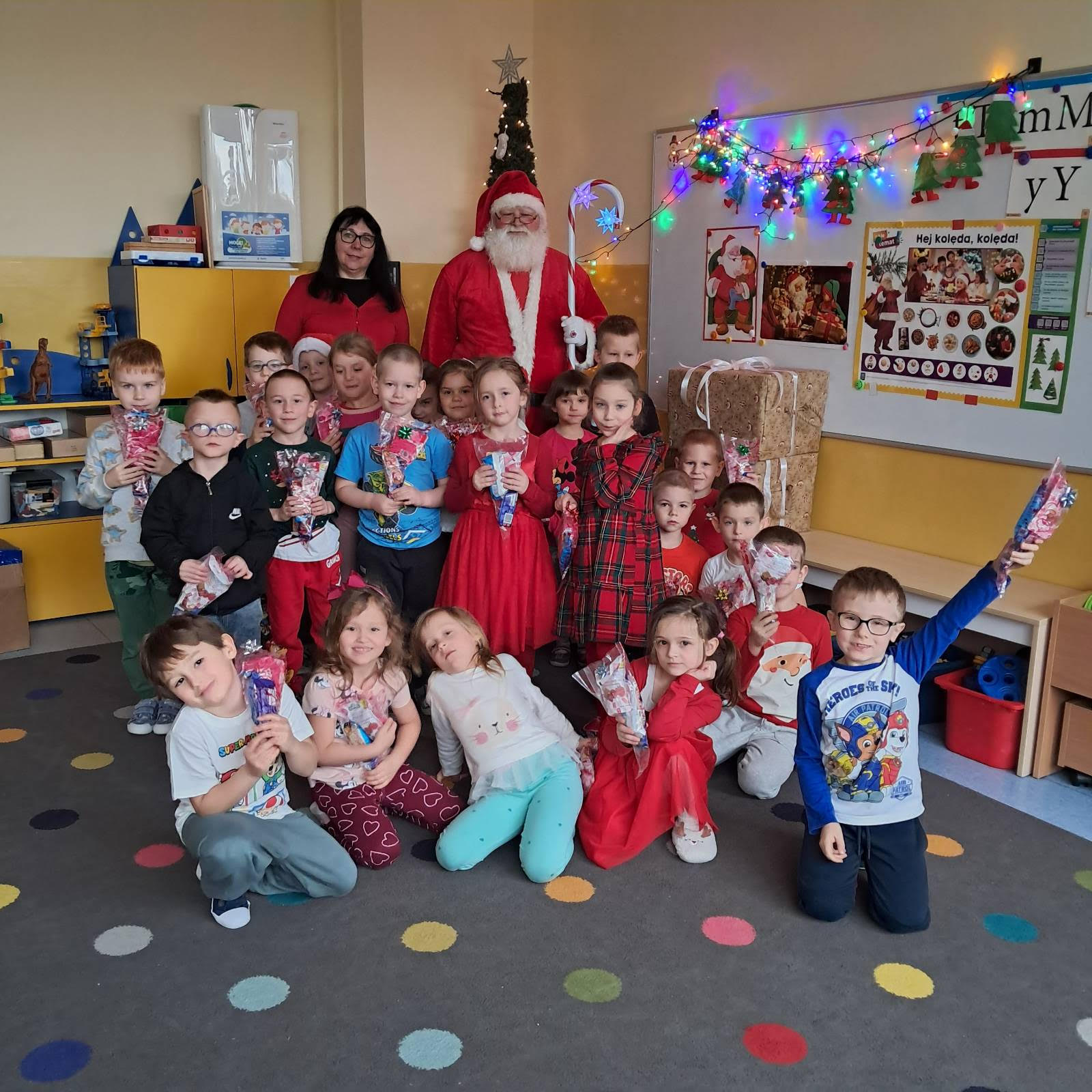Dziś w naszym przedszkolu panowała wyjątkowa, świąteczna atmosfera, ponieważ odwiedził nas Święty Mikołaj. Dzieci z ogromną radością i niecierpliwością oczekiwały na jego przybycie, a moment spotkania wywołał wiele uśmiechów i wzruszeń. Mikołaj przyniósł ze sobą wielki worek pełen prezentów, którymi obdarował wszystkie przedszkolaki. Dzieci z entuzjazmem zaprezentowały przygotowane piosenki i wierszyki, a także dzieliły się swoimi marzeniami. W zamian otrzymały drobne upominki, które sprawiły im ogromną radość. Spotkanie było nie tylko pełne magii, ale także stanowiło doskonałą okazję do rozmów o życzliwości, dzieleniu się z innymi oraz radości płynącej z drobnych gestów. Ten wyjątkowy dzień na długo pozostanie w pamięci dzieci. Serdecznie dziękujemy Świętemu Mikołajowi za wizytę i piękne prezenty!