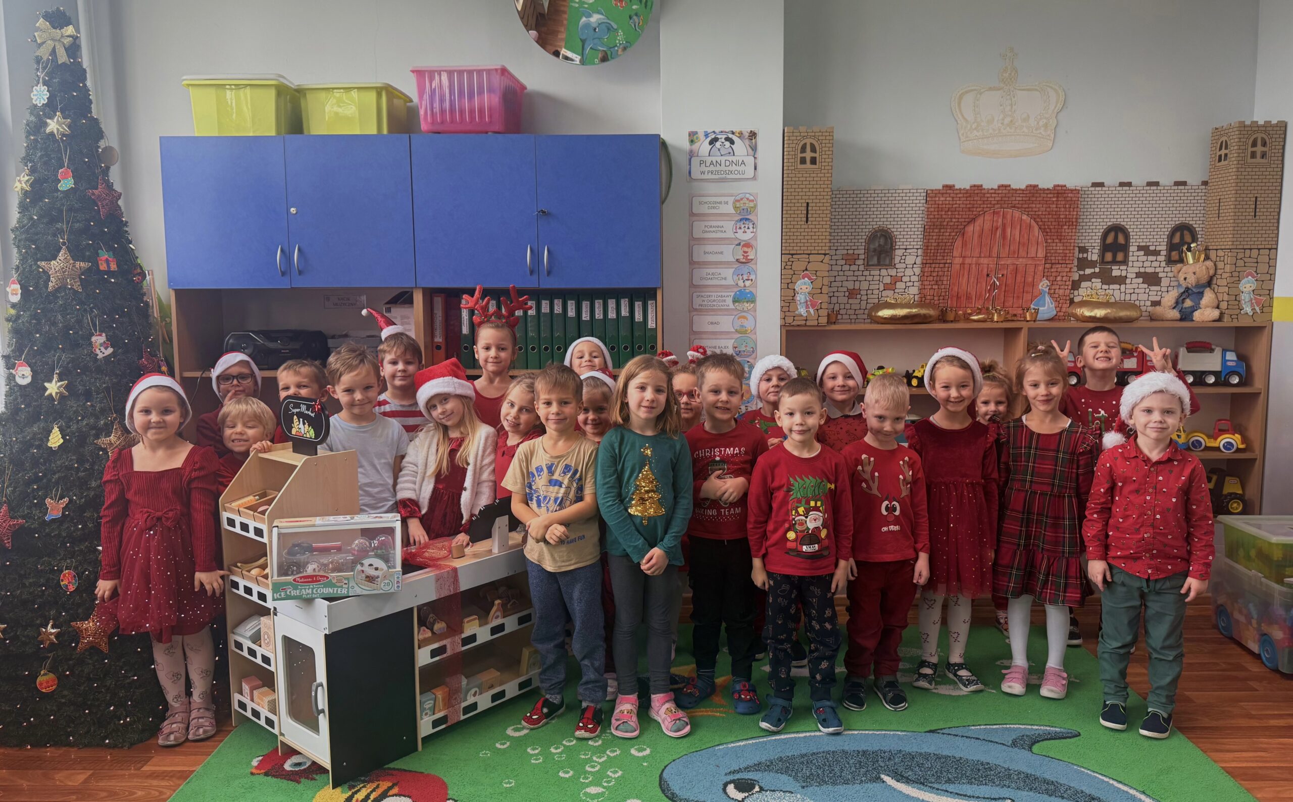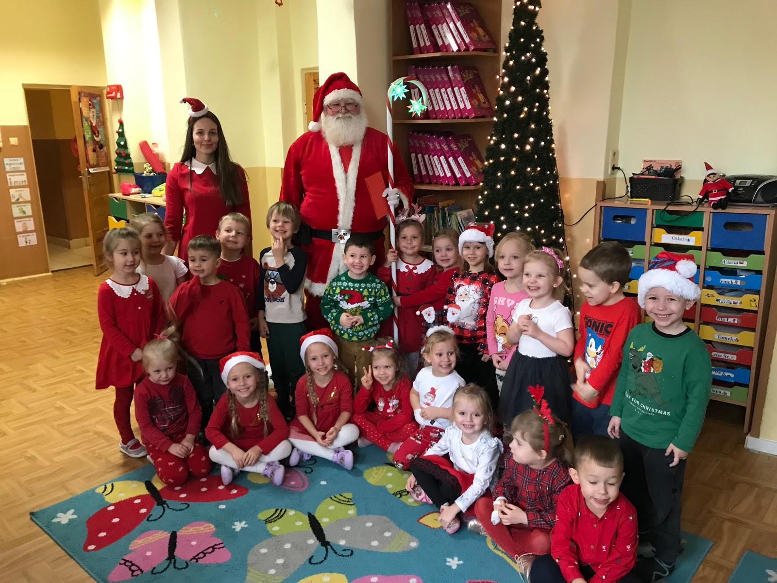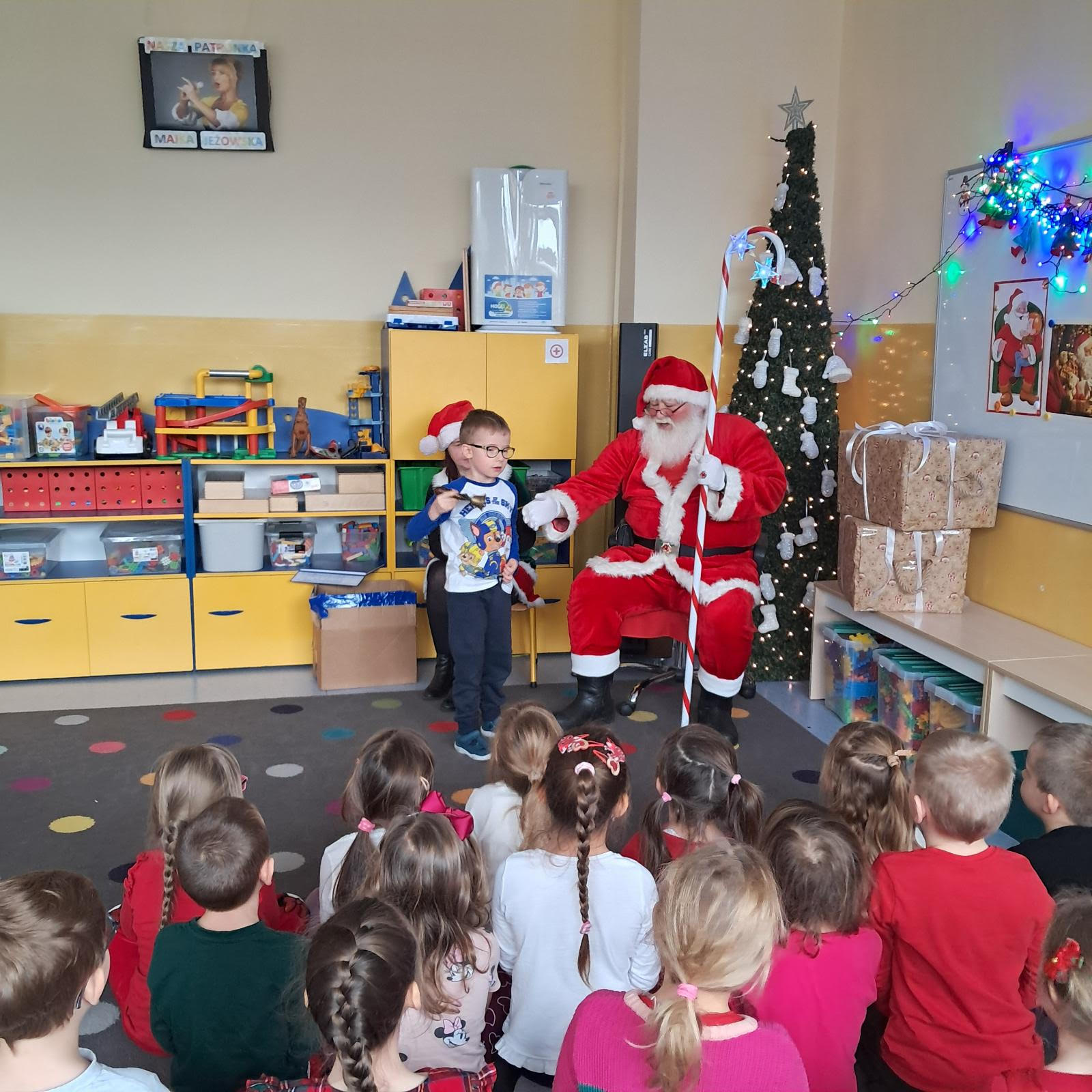 Dziś w naszym przedszkolu panowała wyjątkowa, świąteczna atmosfera, ponieważ odwiedził nas Święty Mikołaj. Dzieci z ogromną radością i niecierpliwością oczekiwały na jego przybycie, a moment spotkania wywołał wiele uśmiechów i wzruszeń. Mikołaj przyniósł ze sobą wielki worek pełen prezentów, którymi obdarował wszystkie przedszkolaki. Dzieci z entuzjazmem zaprezentowały przygotowane piosenki i wierszyki, a także dzieliły się swoimi marzeniami. W zamian otrzymały drobne upominki, które sprawiły im ogromną radość. Spotkanie było nie tylko pełne magii, ale także stanowiło doskonałą okazję do rozmów o życzliwości, dzieleniu się z innymi oraz radości płynącej z drobnych gestów. Ten wyjątkowy dzień na długo pozostanie w pamięci dzieci. Serdecznie dziękujemy Świętemu Mikołajowi za wizytę i piękne prezenty!