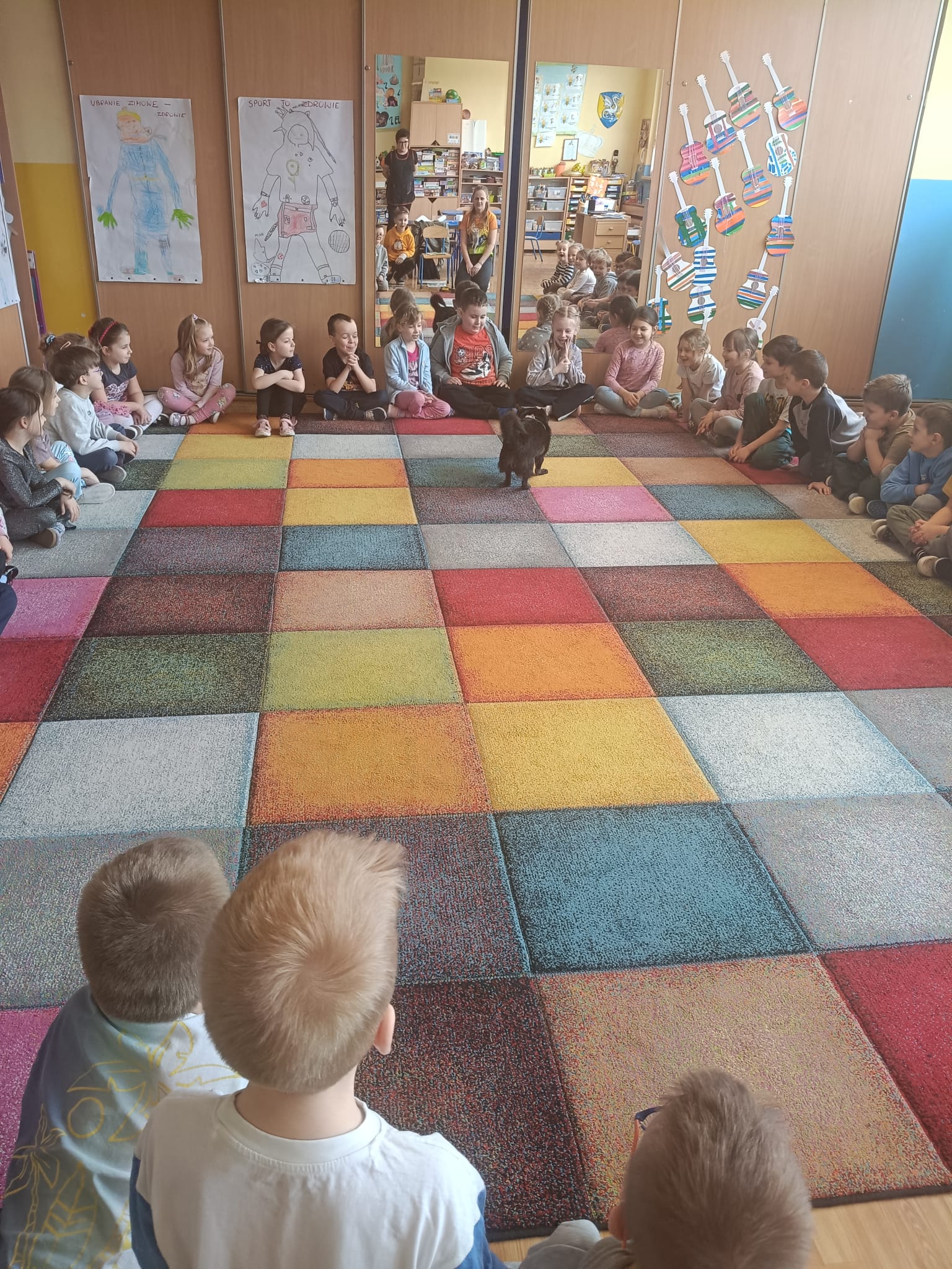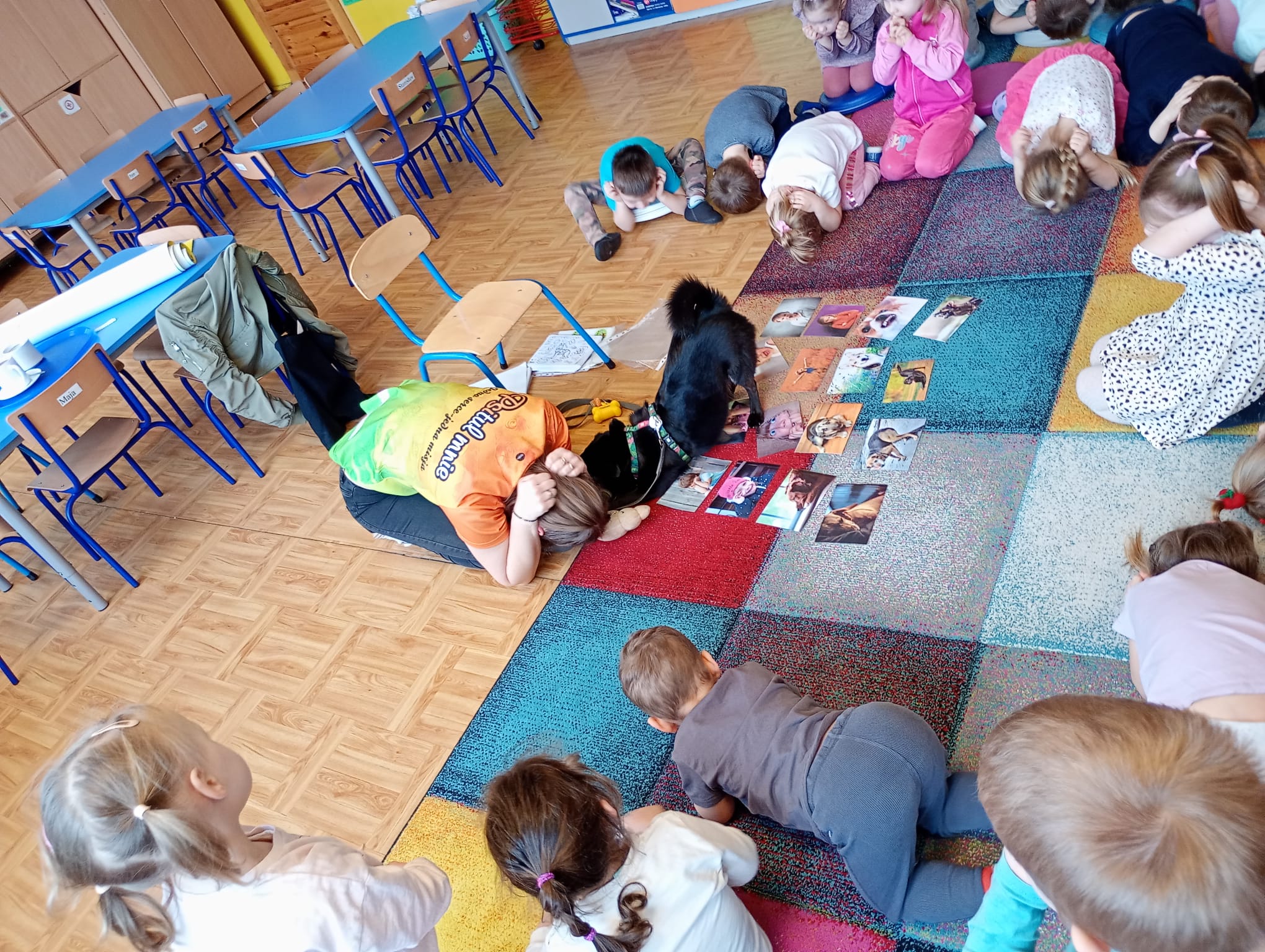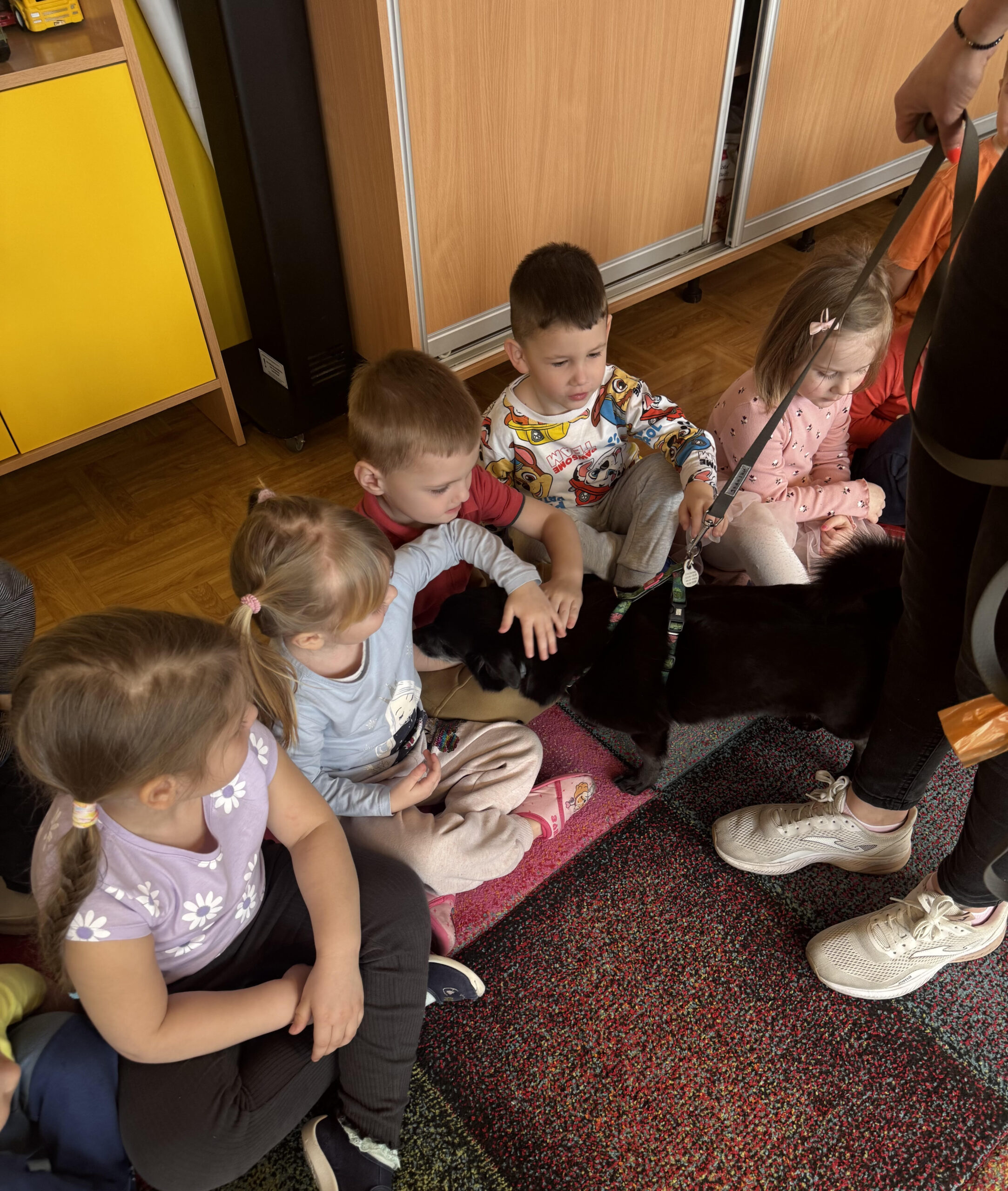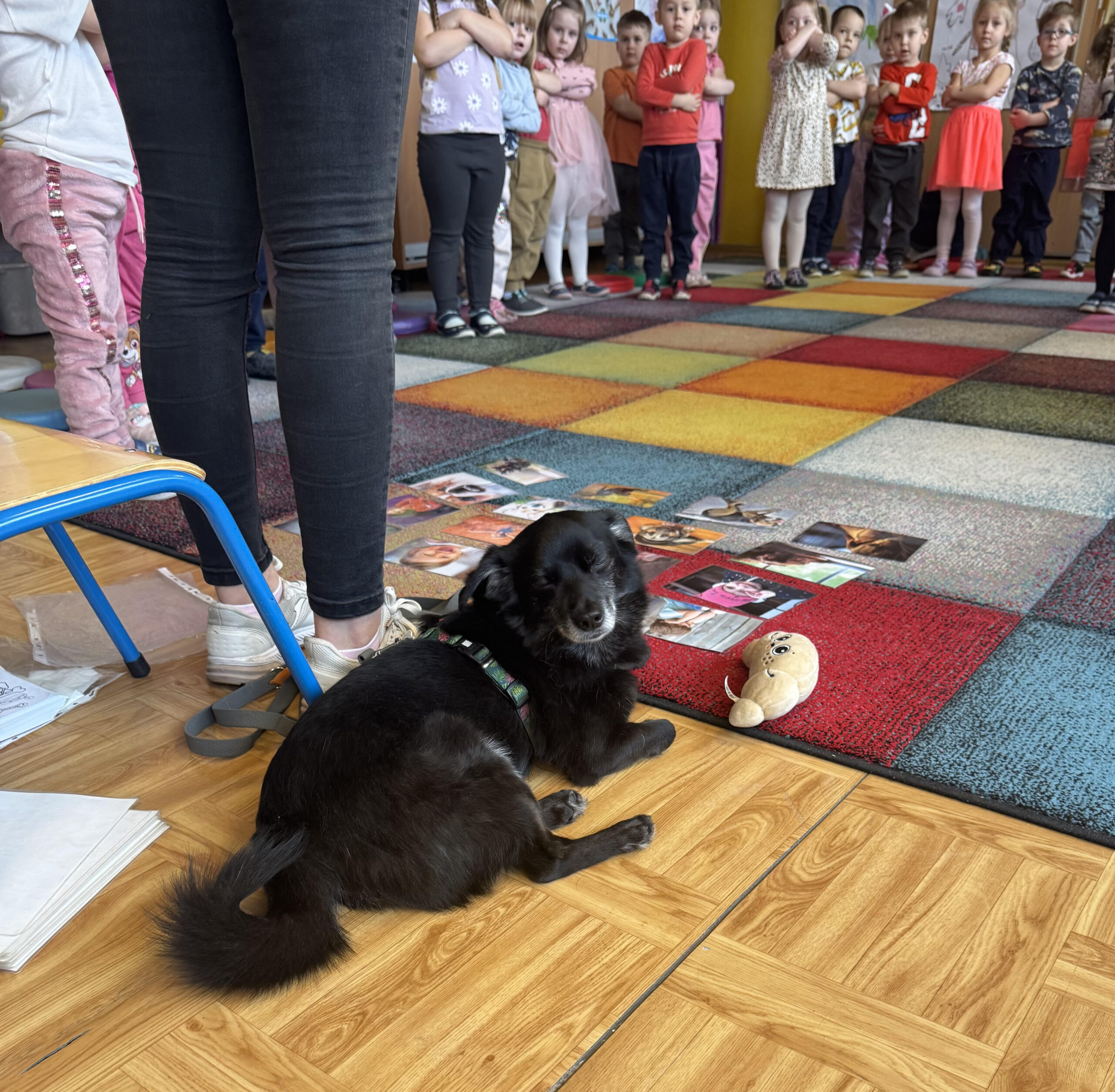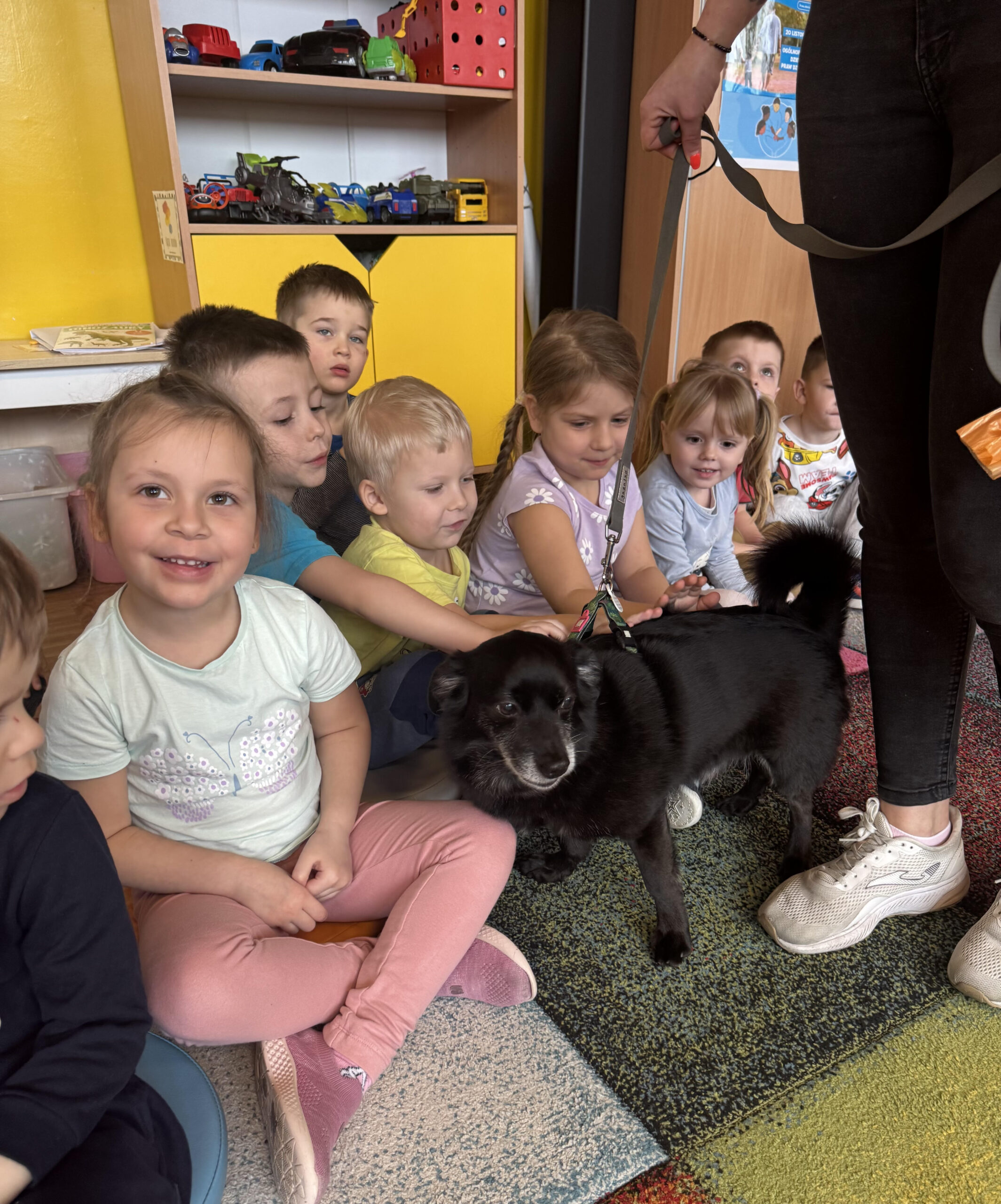 2 marca nasze przedszkole odwiedził wyjątkowy gość – pracownik schroniska Psitul Mnie wraz z uroczym pieskiem Murzynek. Dzieci miały okazję dowiedzieć się, jak prawidłowo opiekować się zwierzętami, jak bezpiecznie zachowywać się w obecności psa oraz dlaczego warto pomagać zwierzętom ze schroniska. Spotkanie wywołało wiele radości i ciekawości, a możliwość poznania pieska była dla naszych przedszkolaków niezapomnianym przeżyciem.