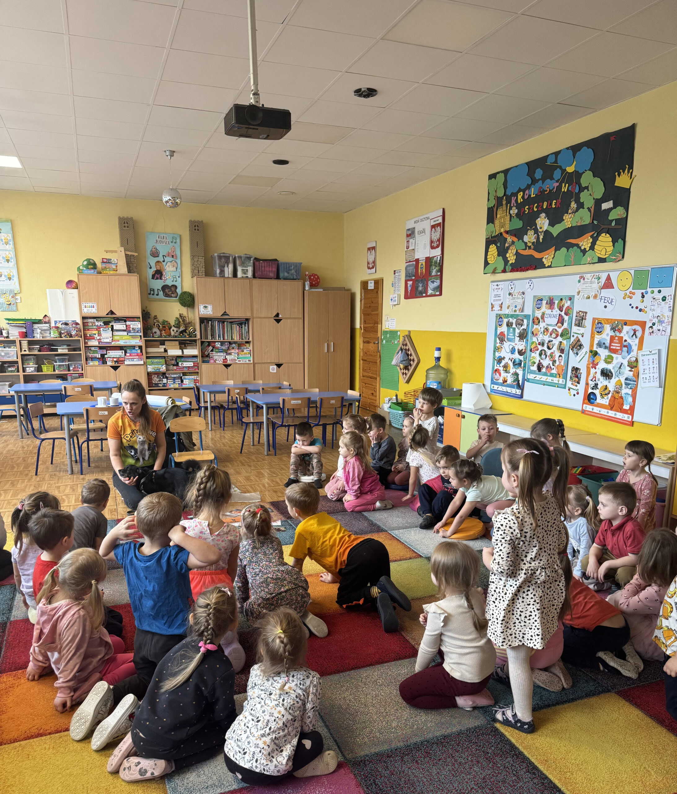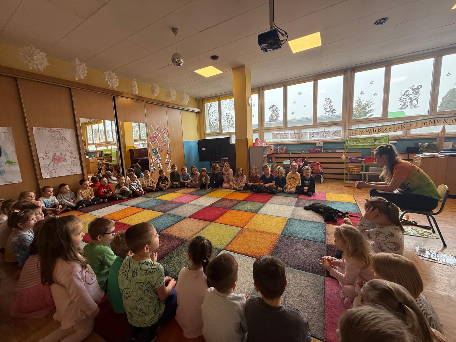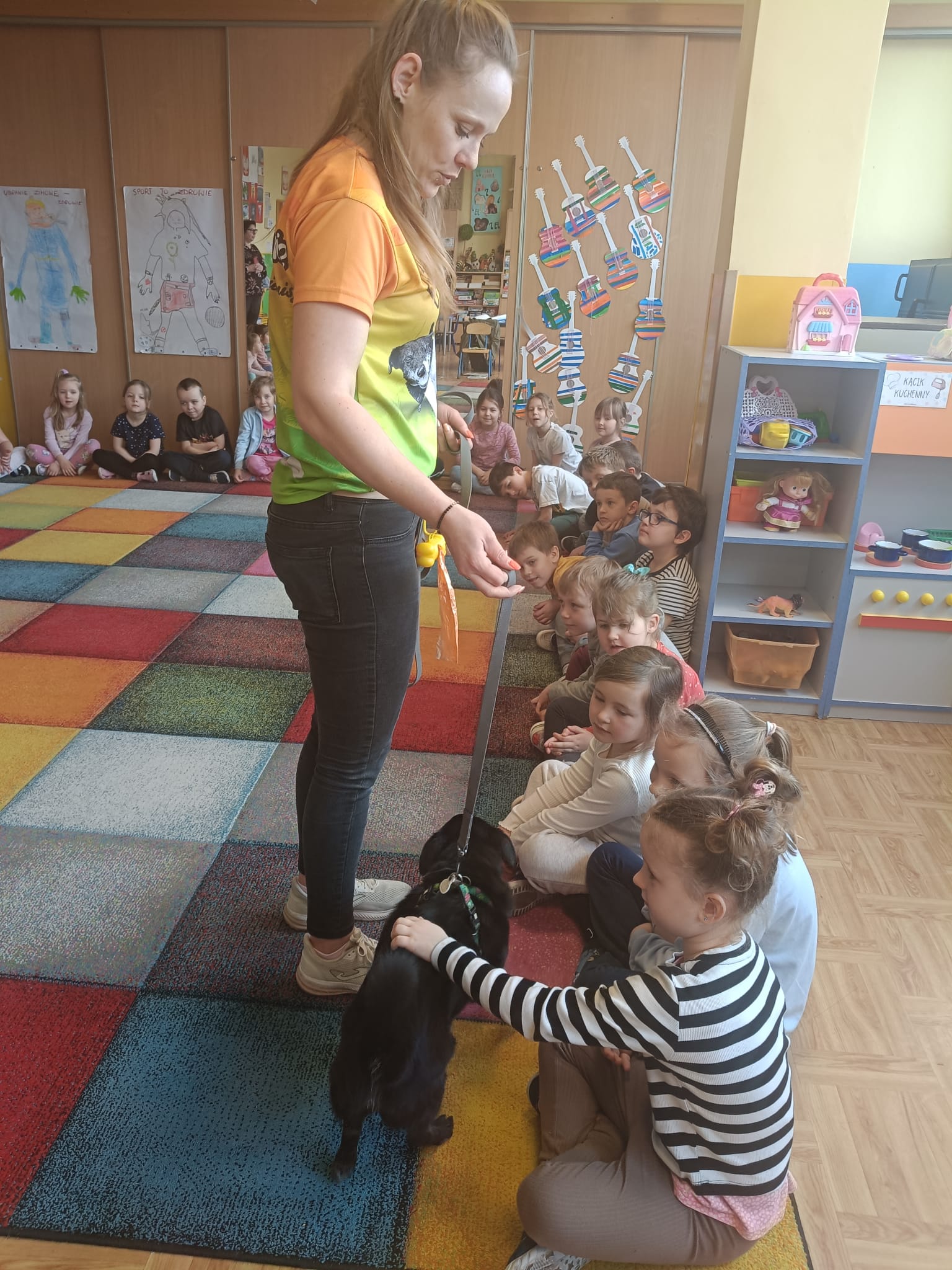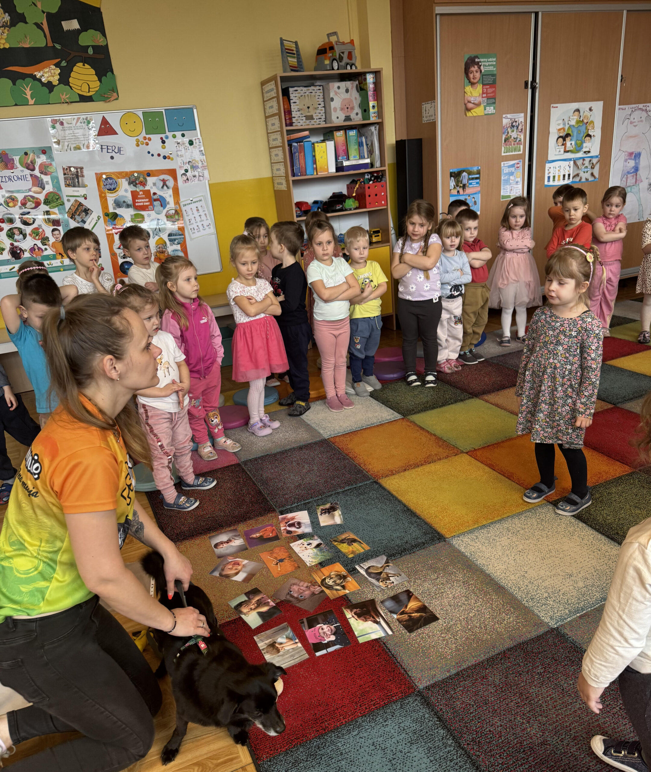 2 marca nasze przedszkole odwiedził wyjątkowy gość – pracownik schroniska Psitul Mnie wraz z uroczym pieskiem Murzynek. Dzieci miały okazję dowiedzieć się, jak prawidłowo opiekować się zwierzętami, jak bezpiecznie zachowywać się w obecności psa oraz dlaczego warto pomagać zwierzętom ze schroniska. Spotkanie wywołało wiele radości i ciekawości, a możliwość poznania pieska była dla naszych przedszkolaków niezapomnianym przeżyciem.